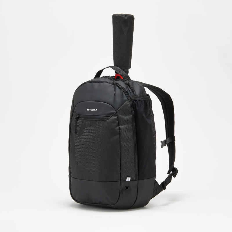 Im AuĂenfach (Kontakt zum RĂŒcken) können bis zu zwei TennisschlĂ€ger fĂŒr Erwachsene oder Kinder leicht verstaut werden. Zudem können die Griffe der TennisschlĂ€ger durch die abnehmbare SchutzhĂŒlle vor Regen oder Staub geschĂŒtzt werden.