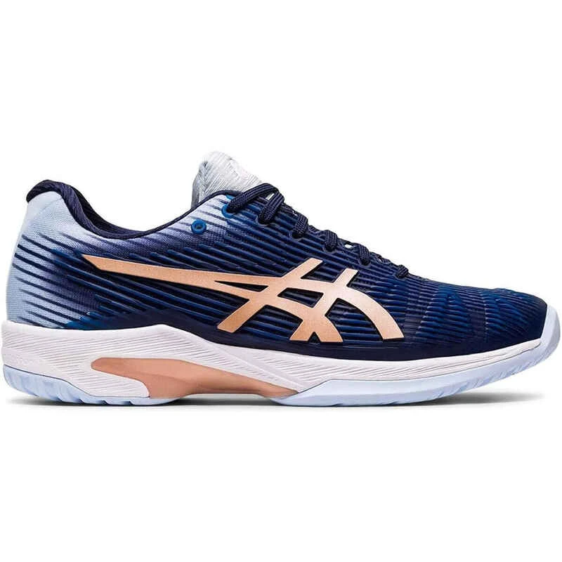 Der ASICS Solution Speed FF ist der leichteste aller Tennisschuhe von ASICS und bietet eine Reihe von technischen Merkmalen zur Verbesserung des Spiels. Die FlyteFoam-Zwischensohlentechnologie bietet Sprungkraft und sorgt für einen haltbareren und reaktionsfreudigeren Schuh, während das Twisstruss-System Stöße absorbiert, ohne die Bewegung einzuschränken. Komplett mit herausnehmbarer Einlegesohle und GEL-Dämpfung von Ferse zu Zehen für weichere Landungen. Mit dem ASICS Solution Speed FF für Damen präsentiert ASICS einen der technologisch fortschrittlichsten Tennisschuhe auf dem Markt. Dieser Hi-Tech-Schuh ist der leichteste Tennisschuh von ASICS, der Sie für Sportarten mit hohem Aufprall wie Tennis ausrüstet. Er überzeugt durch seine FlyteFoam-Mittelsohlentechnologie, die sich nicht nur als langlebig erweist, sondern Ihrem Schritt auch eine echte Feder verleiht. Die Fersen-Zehen-GEL-Dämpfung sorgt für höchsten Komfort und eine weichere Landung, während das Twisstruss-System alle Stöße beim Springen absorbiert, ohne Ihre Bewegung einzuschränken. Die herausnehmbare Ortholite-Einlegesohle bietet die Möglichkeit, bei Bedarf eine medizinische Orthese zu verwenden. Eine AHAR-Außensohle und ein PGuard-Zehenschutz sorgen für zusätzliche Strapazierfähigkeit und ermöglichen es Ihnen, bei jedem einzelnen Tennisspiel eine echte Distanz zu bewältigen.