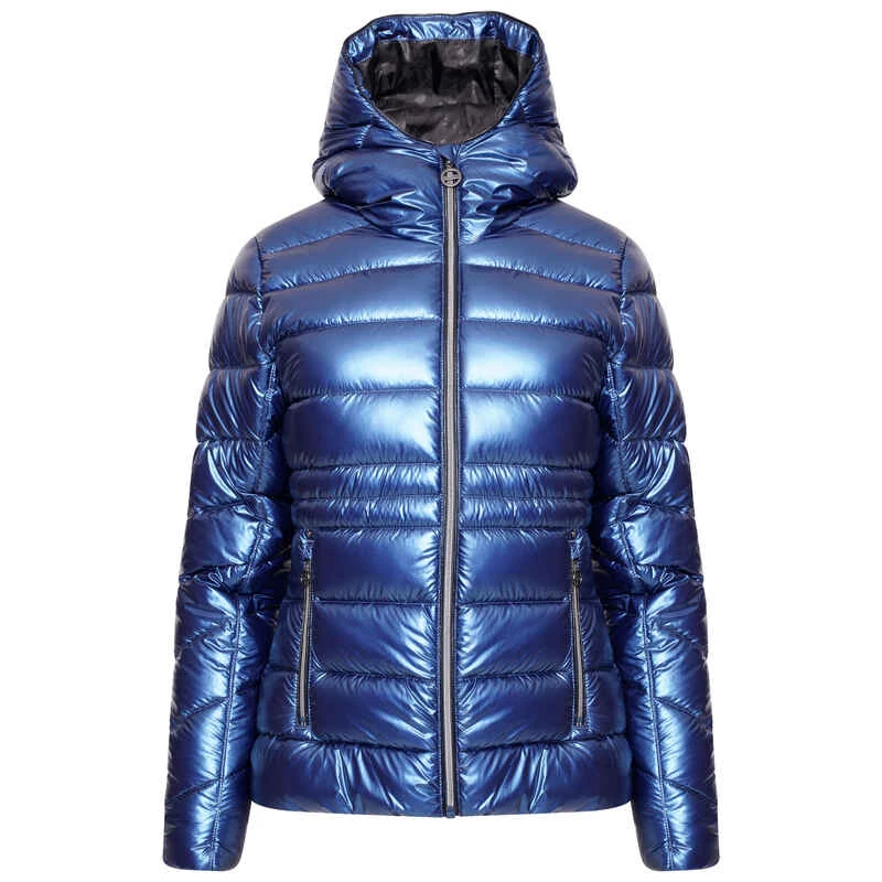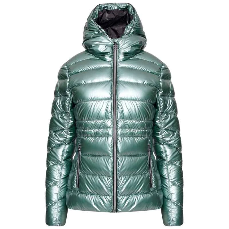 Reputable Steppjacke. Aus hochglänzendem Polyester-Twill-Gewebe, das besonders weich zu tragen ist. Chevron-Steppung mit hoher Wärmeleistung und geringer Masse, die Sie warm hält, wenn es kalt wird. Verziert mit Kristallen für zusätzlichen Glanz. Gemütliche Kapuze mit hohem Kragen und Kinnschutz für zusätzlichen Schutz vor den Elementen. Ein stylisches Standardprodukt für die kälteren Tage. Dies ist ein schmal geschnittenes Modell, wir empfehlen, bei der Bestellung eine Nummer größer zu bestellen. Für dieses Produkt wurden 19 Plastikflaschen recycelt.