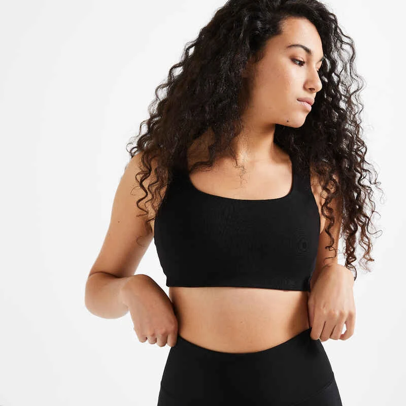 Dieses Bustier 120 aus Baumwolle mit leichtem Halt eignet sich für deine Fitnessaktivitäten mit geringer Stoßbelastung, wie Stretching, Muskeltraining, sanfte Gymnastik oder Pilates.
