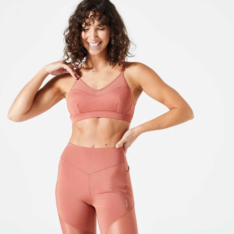 Dieses Bustier 140 aus Baumwolle mit leichtem Halt eignet sich für deine Fitnessaktivitäten mit geringer Stoßbelastung, wie Stretching, Muskeltraining, sanfte Gymnastik oder Pilates.