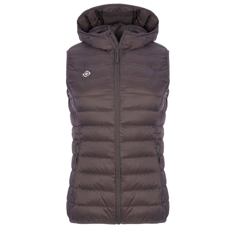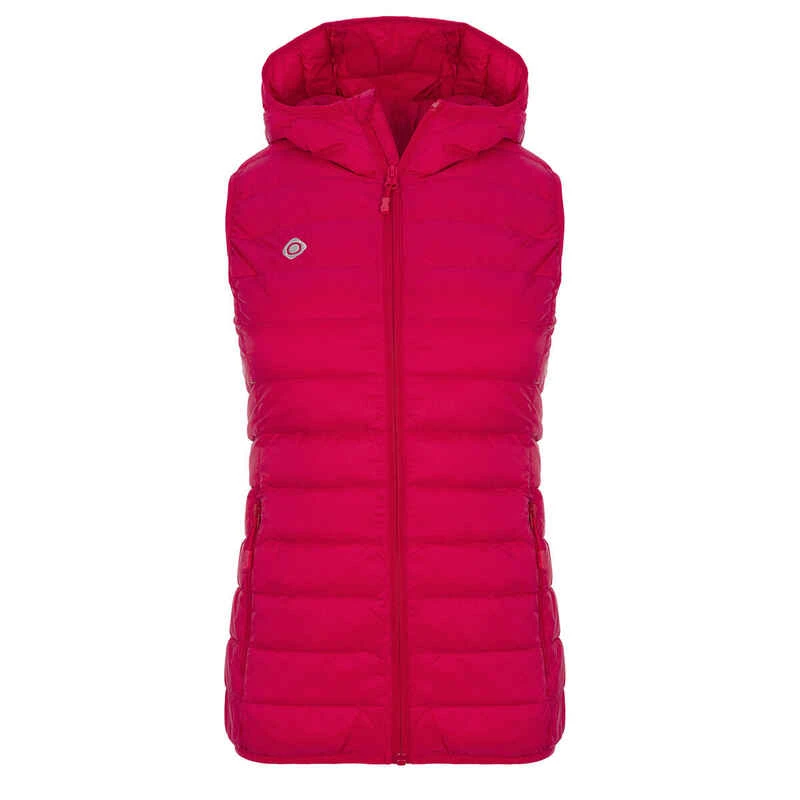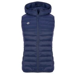 Weste mit Federfüllung und Kapuze.