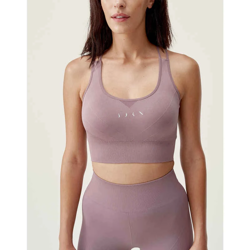 Sport-BH mit mittelhohem Halt. „Air_Feel“-Gewebe mit 3D-Technologie. Hinten gekreuzte schmale Träger. · Nahtloser Stoff · Nachhaltige Fasern · 4-Wege-Stretch-Stoff · Hoher Sonnenschutz · Weicher Griff · Antistatisch · Antibakteriell · Abnehmbare Polster