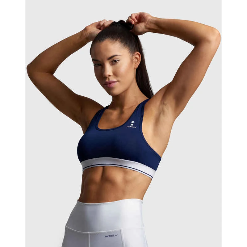 Ein bequem gepolsterter Sport-BH, der sich ideal als Basisschicht eignet und mittlere Unterstützung und Kompression bietet, um Ihre Brust während des Trainings oder Spiels an Ort und Stelle zu halten.