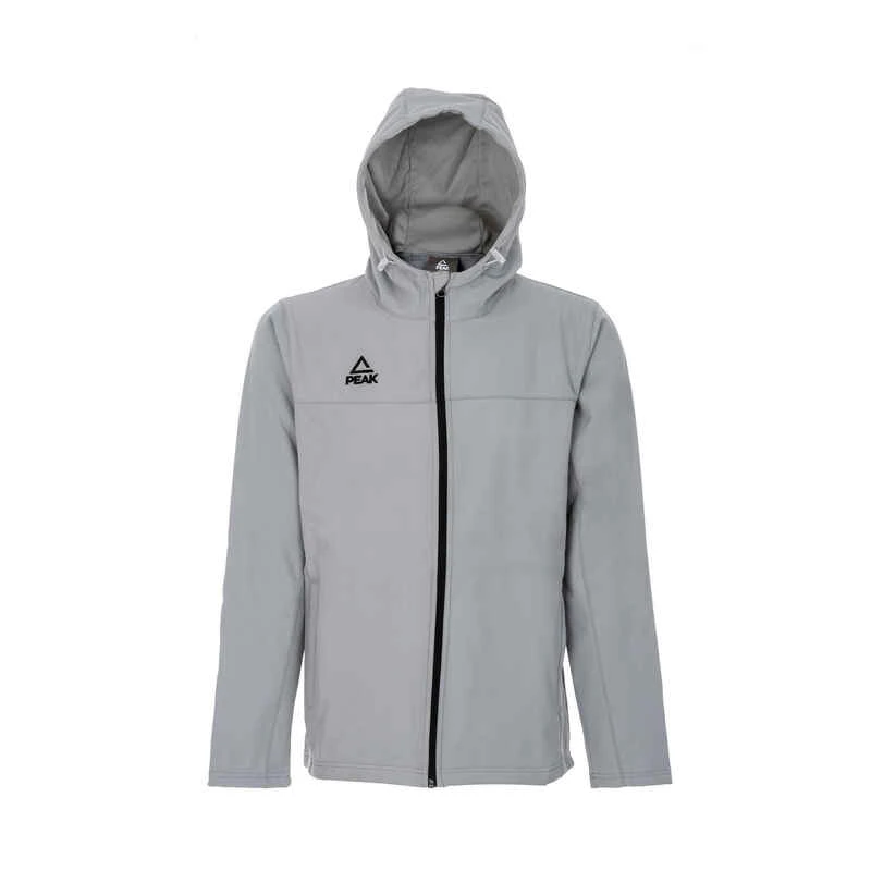 PEAK Softshell Jacke Diese Jacke ist aus wind-und wasserabweisenden Material gefertigt. Innen ist sie mit kuscheligen Fleece gefüttert. In den beiden kleinen Außentaschen, die mit Reißverschluss sicher zu verschließen sind, kann man seine wichtigsten Utensilien bequem mitnehmen. Ihre Kapuze ist mit einem Gummizug versehen, so dass man sie bei Bedarf enger ziehen kann und vor Wind und Kälte geschützt ist. Da die Jacke gerade geschnitten ist, ist sie ein absolutes Unisex Modell und passt sowohl Damen, als auch Herren hervorragend.