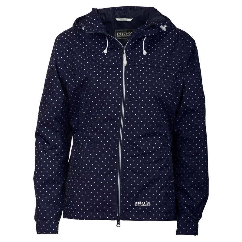 Atmungsaktive Damenjacke aus PXE-PRO mit dekorativem All-Over-Print. Durchgehender, unterlegter 2-Wege-Front-RV. Angeschnittene, verstellbare Schirmkapuze. 2 Seitentaschen. Innentasche als Packtasche. Verstellbare Armabschlüsse. Smartphone-Tasche. Gewicht in Gr. 38 = 400 g. Rückenlänge in Gr. 38 = 73 cm.