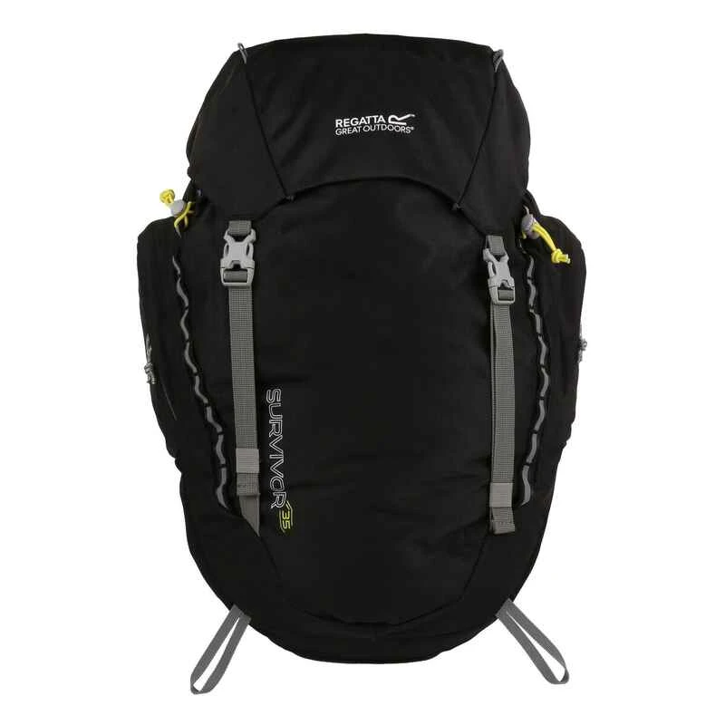 Der Regatta Survivor V4 85L ist ein Outdoor Wanderrucksack aus trapazierfähigem 600D Polyester-Ripstop-Gewebe und einem Volumen von 85 Litern. Die Air-Mesh-Rückenkonstruktion sorgt für für eine optimale Luftzirkulation bei Trekkingtouren. Der komfortable, verstellbare, gepolstertere Hüftgurt mit Netzeinsatz überträgt einen Großteil des Gewichts auf die Hüfte und entlastet den Rücken. Ein abnehmbarer Regenschutz schützt vor Nässe.