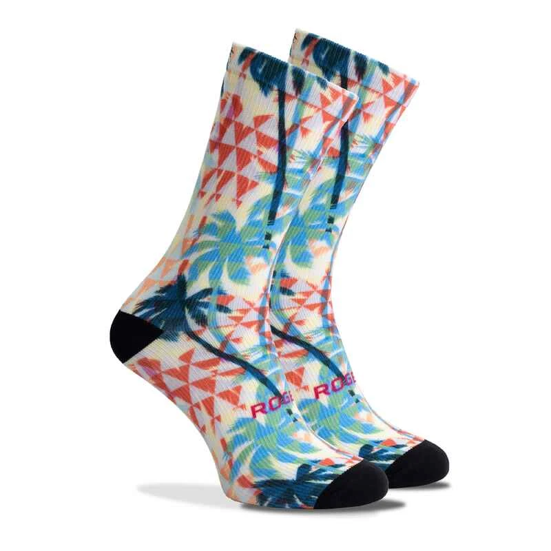 Die Hawaii Socken sind Teil des Rogelli Hawaii Sets und passen perfekt zum Rogelli Hawaii Radtrikot. Die Hawaii-Socken werden mit einer innovativen Drucktechnik bedruckt, wodurch der Druck schön zur Geltung kommt und Sie modisch unterwegs sein können. Die Radsocken sind aus einem elastischen Lycra-Gewebe gefertigt und haben eine anatomische Passform. Das verstärkte Band um den Rist bietet zusätzlichen Halt. Diese verstärkte Webtechnik wird auch an der Ferse und den Zehen angewendet. Die nahtlosen Zehen verhindern Irritationen.