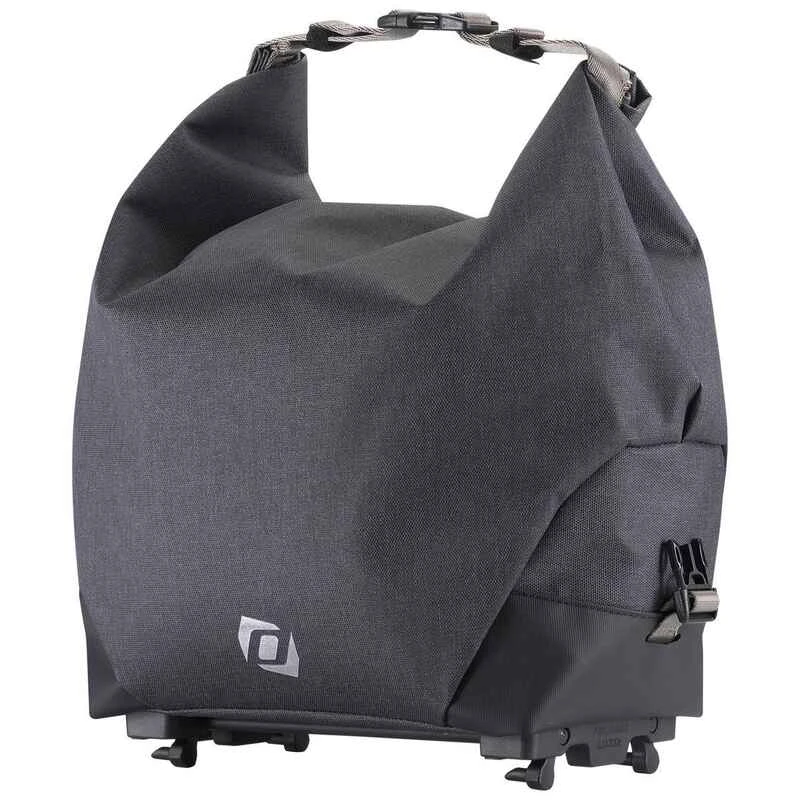 - 600D-Melange mit TPU-Beschichtung – Wasserfeste Gepäcktasche – Roll-up-Verschluss mit zwei Verschlussoptionen (oben oder seitlich) – Racktime Snap‘it-Adapter – Reflektierende Elemente zur Sicherheit – Volumen: 20 L – Gewicht: 500 g – Höhe: 20–35 cm; Breite: 30 cm; Tiefe: 16 cm