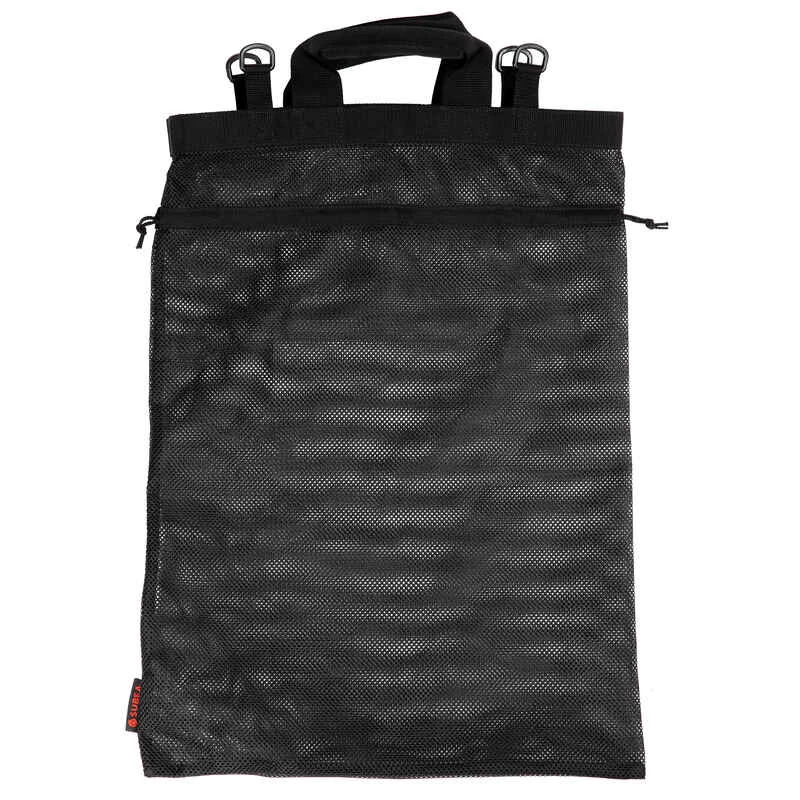 Zwei gepolsterte Tragegriffe und Kordelzug zum Schließen des Netzes