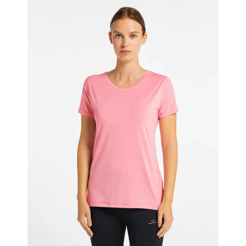 Das hochwertige Material fühlt sich hervorragend weich auf der Haut an. Für ein Training ohne Grenzen transportiert es beim Sport die Feuchtigkeit vom Körper weg. Das Sport-T-Shirt für Damen liefert optimale Performance sowie Dynamik und ist somit die perfekte Wahl, um sportliche Höchstleistungen zu erreichen.