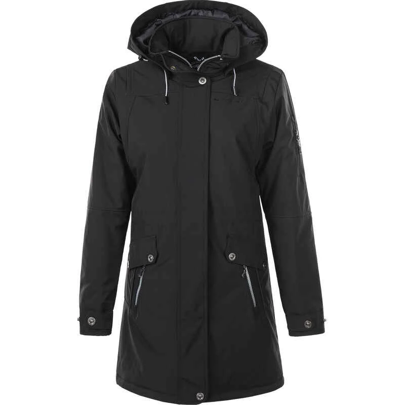 Die Softshelljacke NAMOL waterpoof W-PRO 10000 für Damen von WHISTLER aus Dänemark ist ein wahrer Hingucker. Eine lange Jacke, die an kühlen Tagen auch das empfindliche Gesäß wärmt. Der Softshellparka kommt dezent und sportlich im typisch dänischen Design. Ideal für die Übergangszeit und für verregnete Tage geeignet. Mit der 10.000 er Wassersäule ausgestattet wird garantiert nichts nass. Das 3-Lagen-System ist hervorragend atmungsaktiv, wärmeausgleichend sowie winddicht. Du kannst Sie sowohl an wärmeren als auch an kühleren Regentagen tragen, ohne zu schwitzen oder zu frieren. Passe dafür einfach die untere Kleidungsschicht entsprechend an. Das leichte Funktionsmaterial und die hervorragende Atmungsaktivität machen die Jacke besonders trageangenehm. Der hochschließende Stehkragen bietet bei Wind und Wetter einen richtig tollen Schutz. Mit einer praktisch verstellbaren Kapuze. Ein top Preis-Leistungsverhältnis gibt es obendrein!Material: 96% Polyester, 4% Elasthan